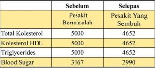 - 94% pesakit mencapai tahap kolesterol & gula darah yang normal.